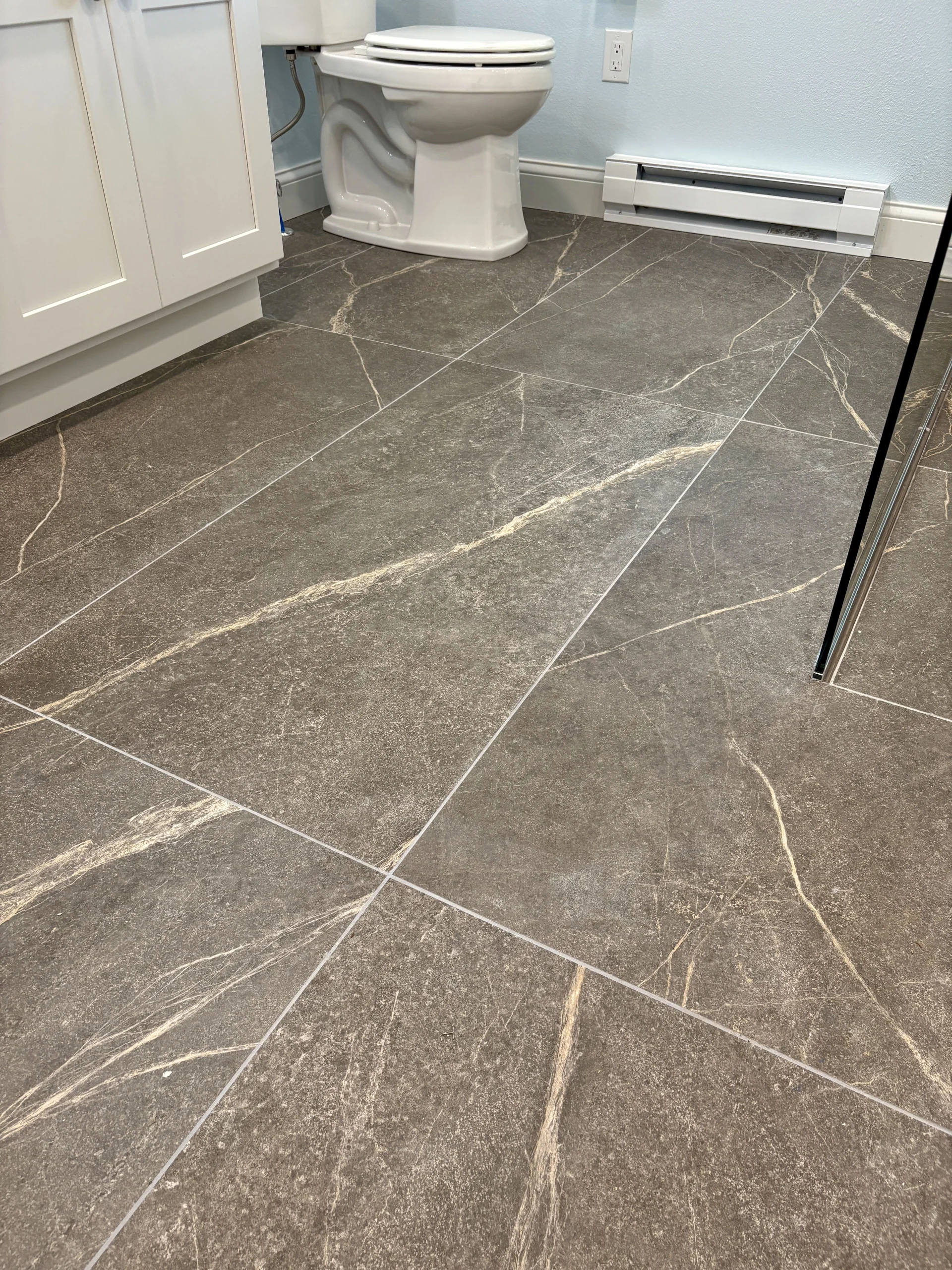 – Large-format tile flooring for visual appeal, durability, and improved mobility.