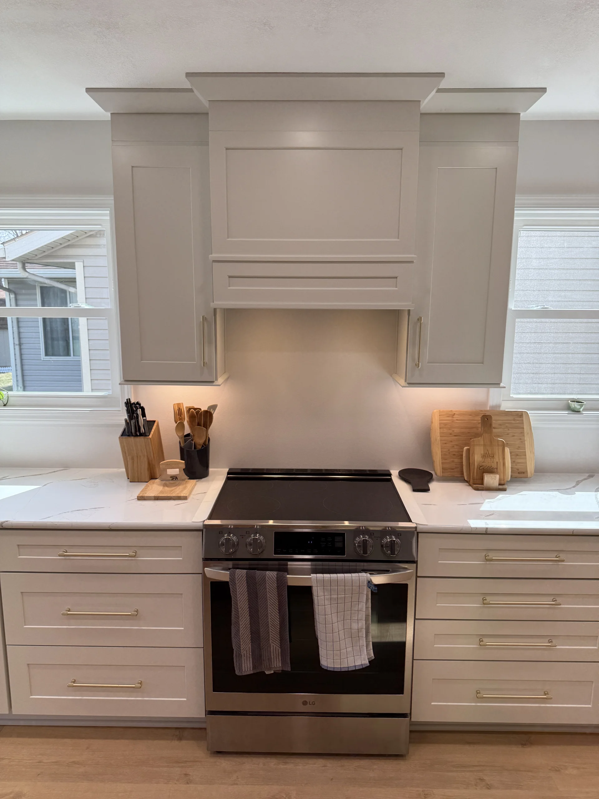 High-end hood vent installed as a focal point with improved ventilation.