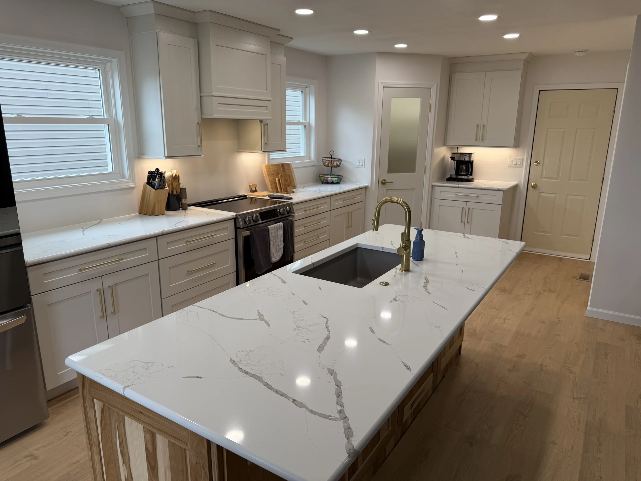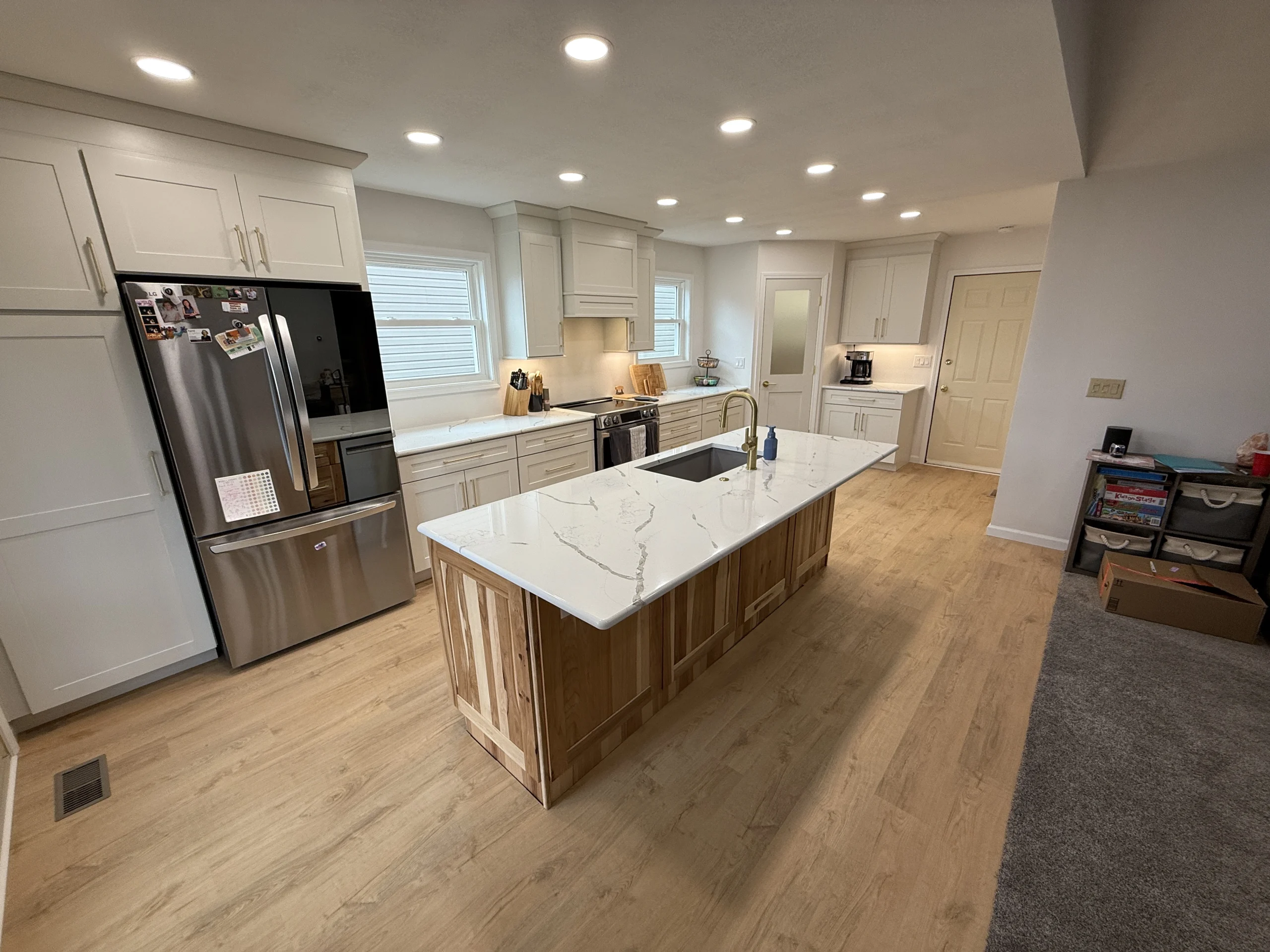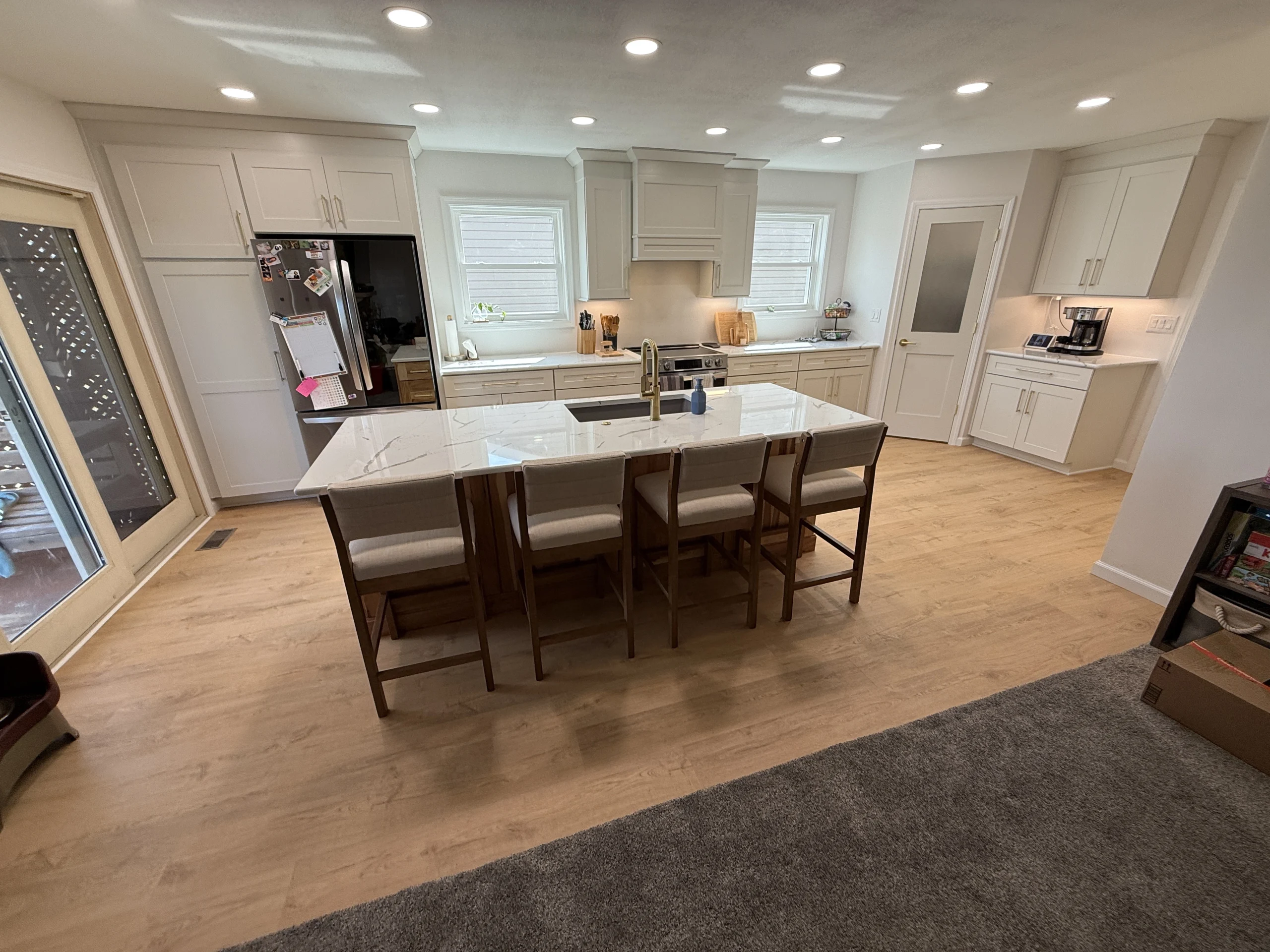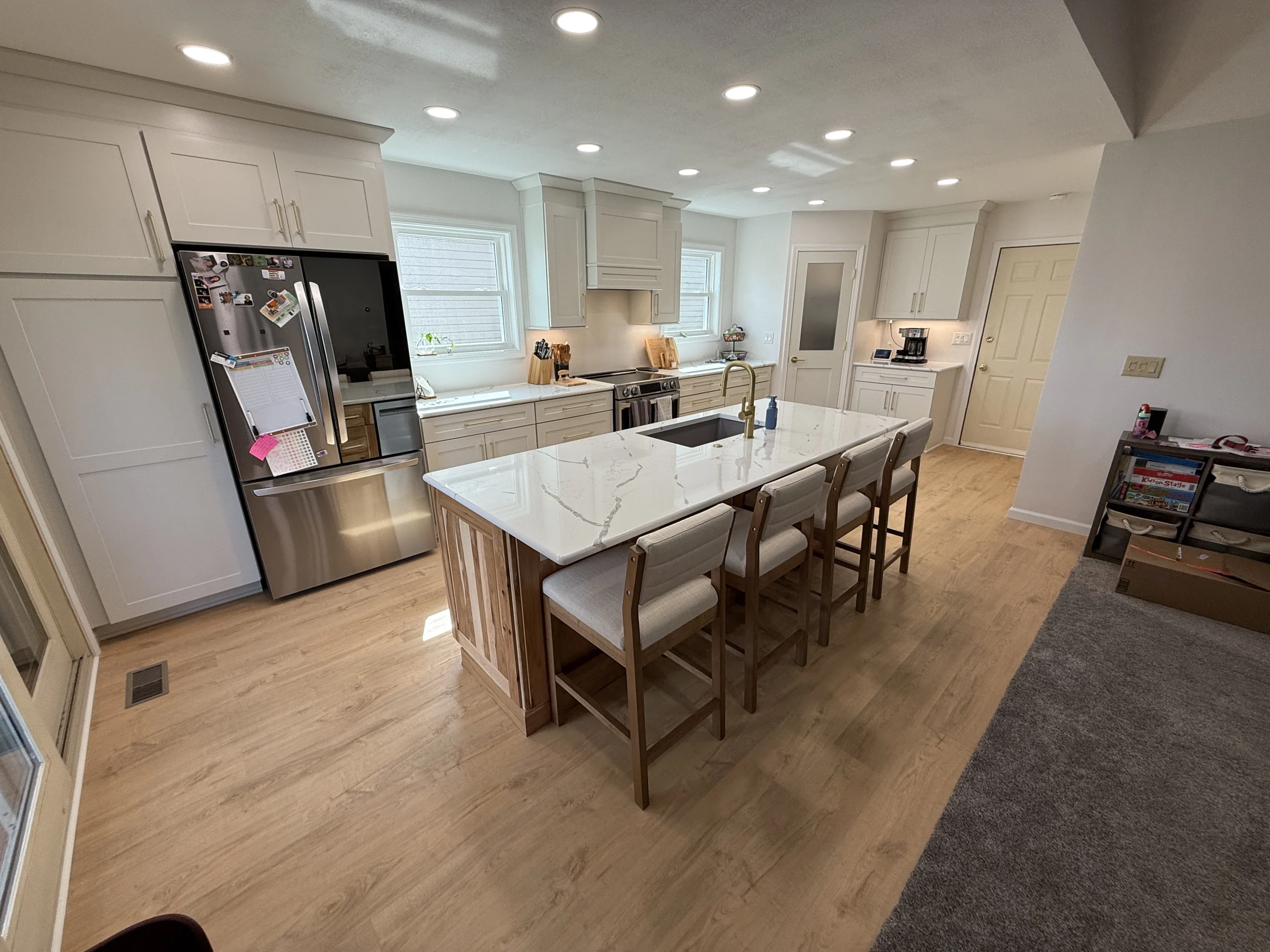 One of the most meaningful changes was the addition of a new window, bringing natural light into the room and instantly changing how the space feels. To support the family’s storage needs, we designed and built a custom pantry closet that keeps everything organized without overpowering the room.