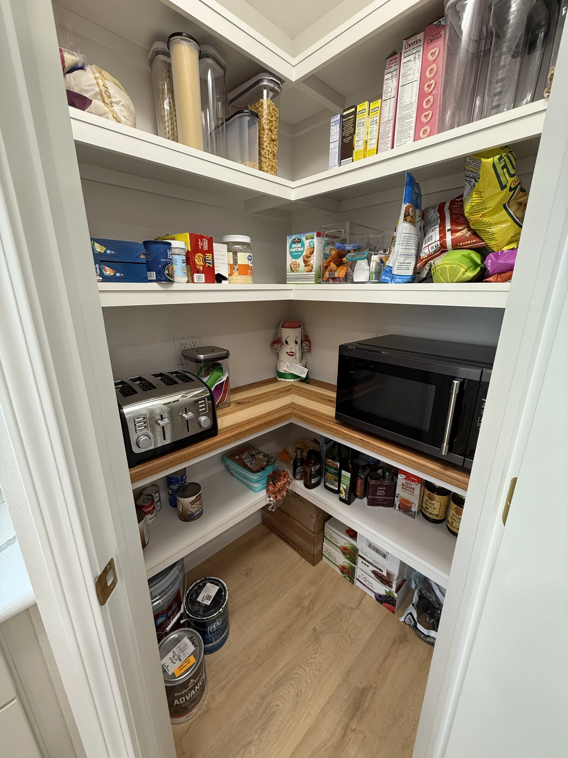 Custom-built pantry closet for clean, functional storage.