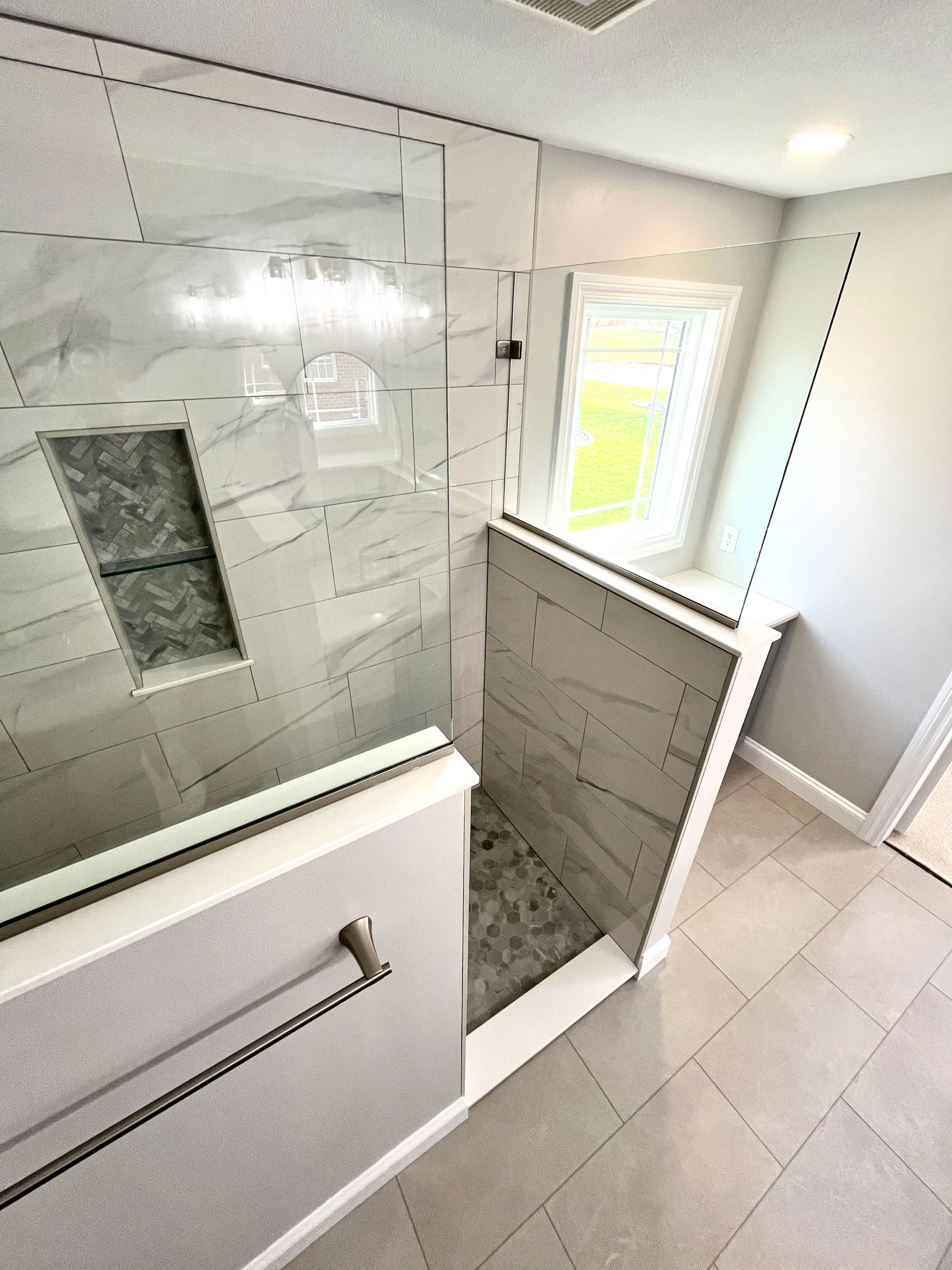 – Installed a new, larger window to allow for a custom expanded shower layout.