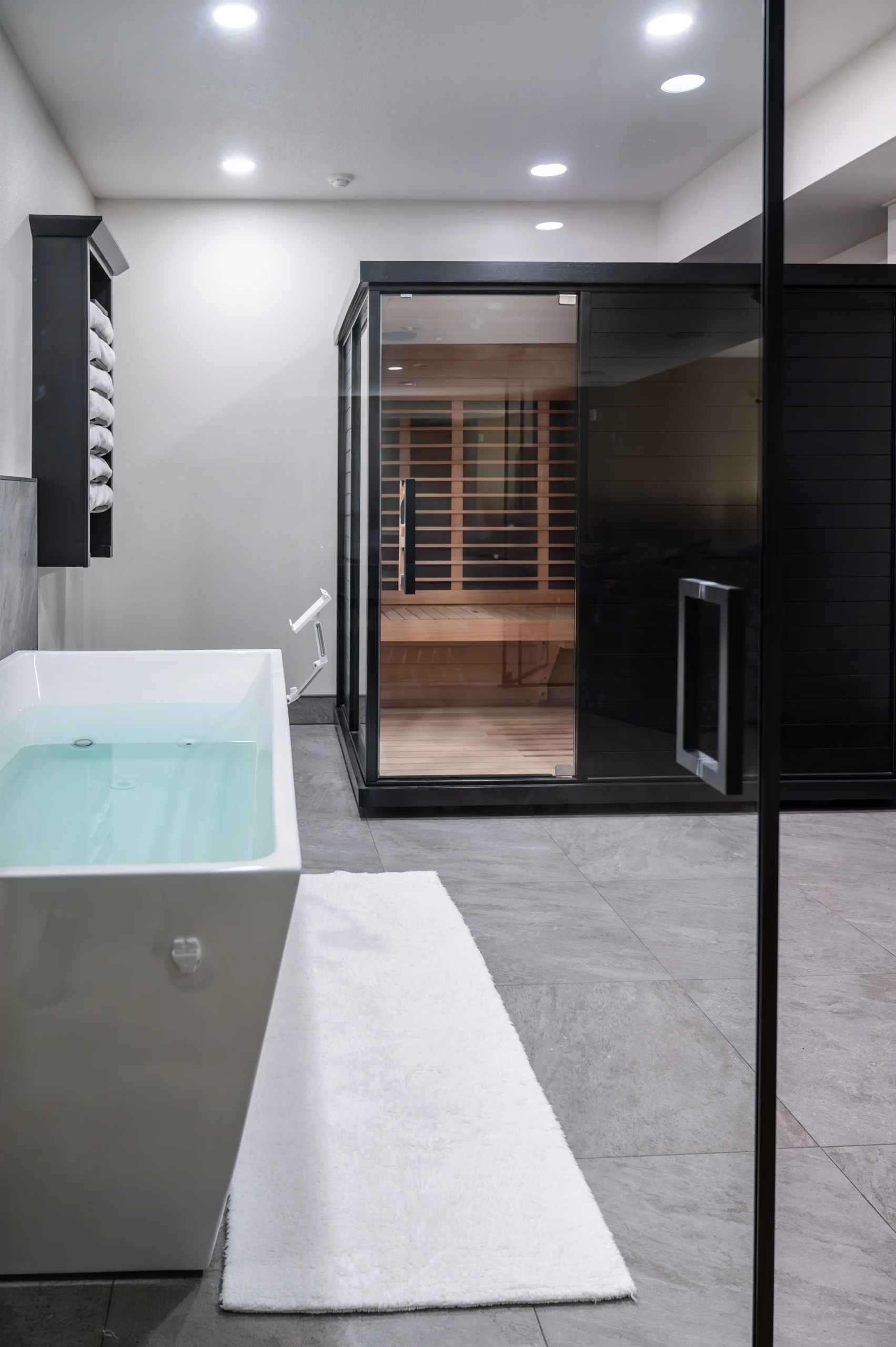 – Custom spa-inspired basement remodel designed for relaxation, recovery, and daily wellness.