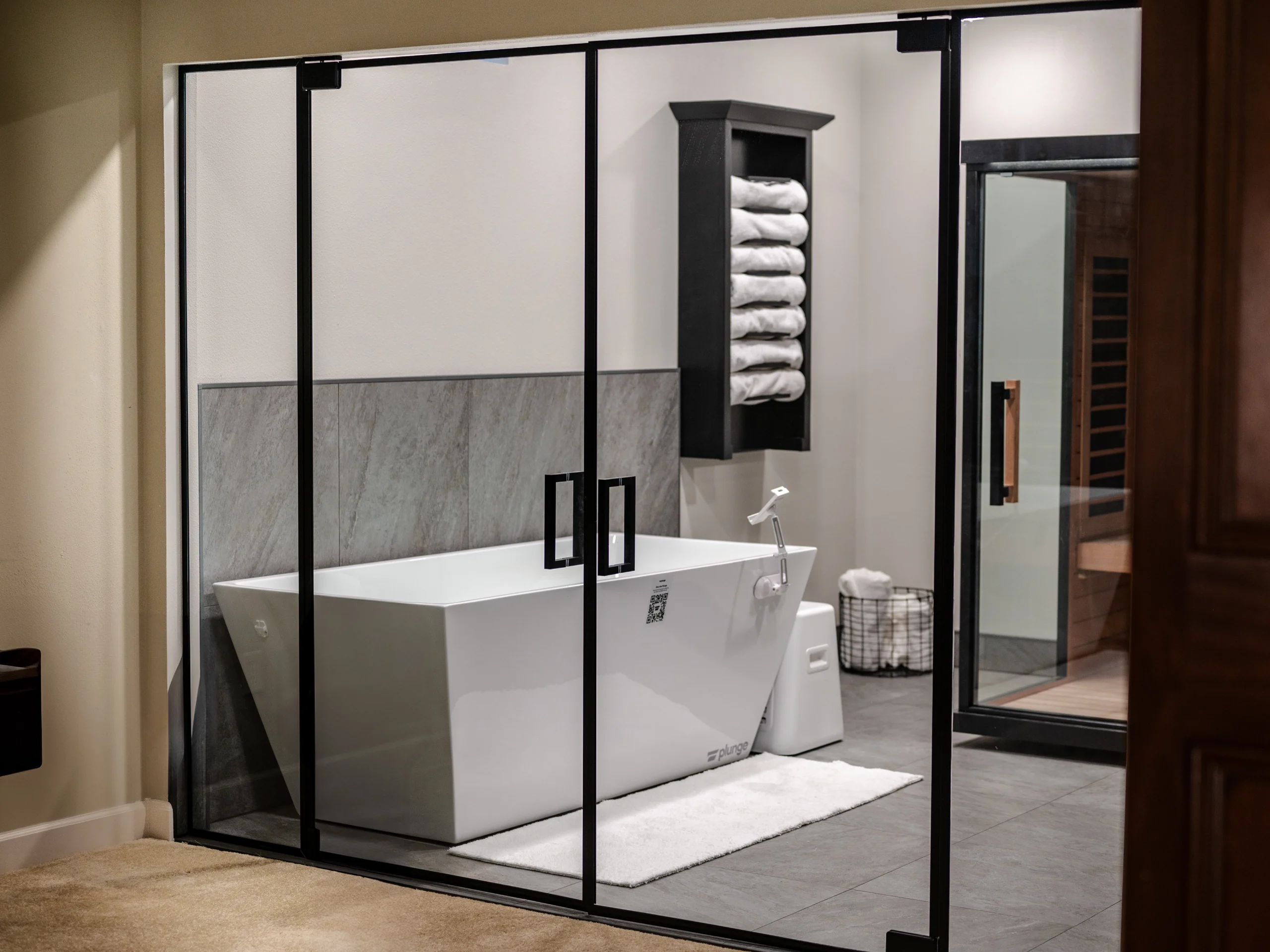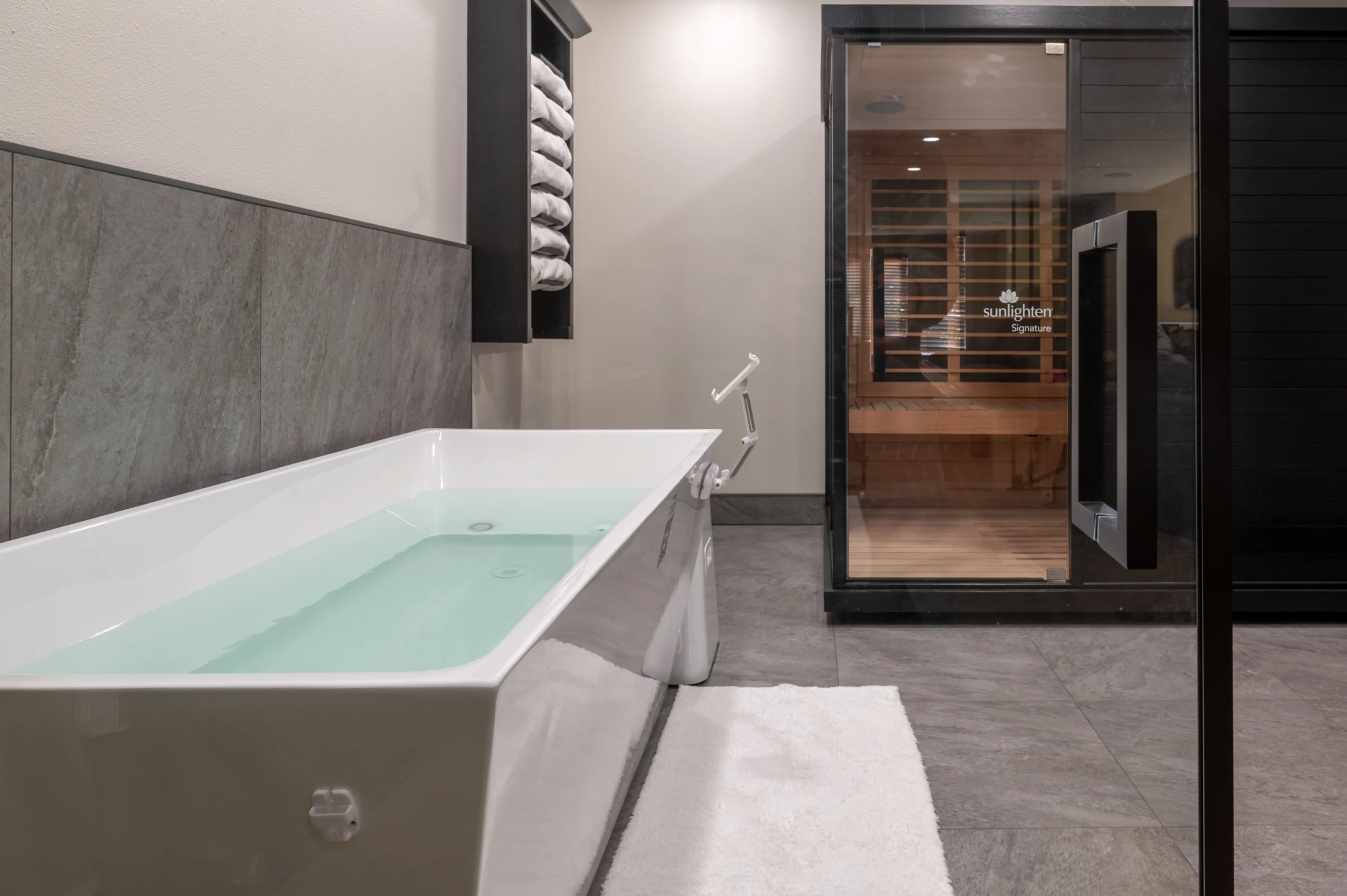 – Dedicated ice-plunge soaking tub for contrast therapy and athletic recovery.