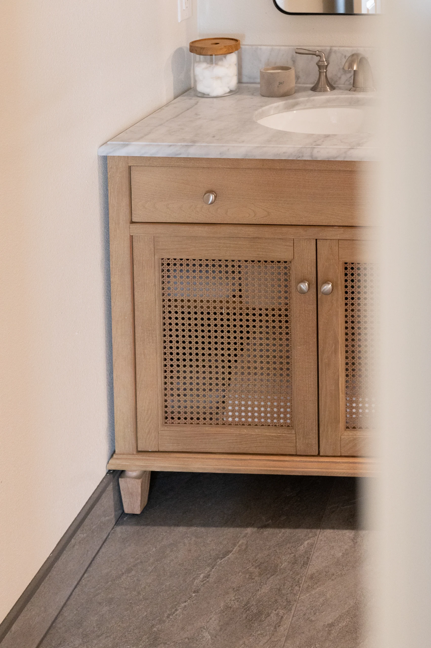 This stunning wellness retreat is proof that even a lower-level space can become the most rejuvenating room in the home. Our clients, both deeply involved in the health and recovery world, envisioned a quiet escape where they could relax, reset, and elevate their daily routines. We partnered with them to transform an unfinished basement corner into a spa-grade sanctuary that feels both luxurious and purposeful.